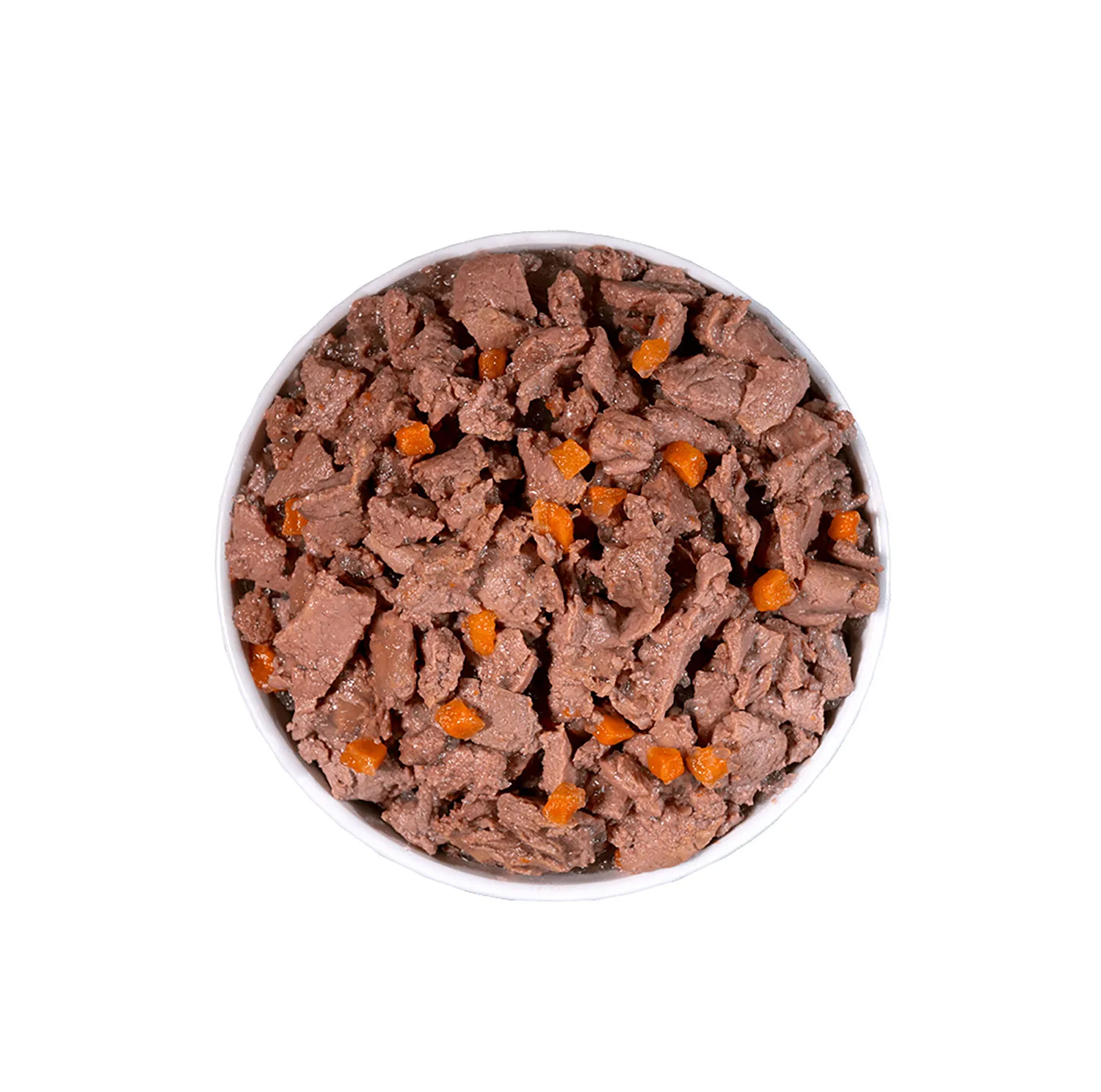 Contiene ingredientes funcionales como la zanahoria, rica en betacaroteno, que apoya la salud ocular; y el romero, reconocido por sus propiedades antisépticas y antiinflamatorias. Además, su fórmula libre de cereales es ideal para gatos con sensibilidad digestiva o alergias alimentarias.