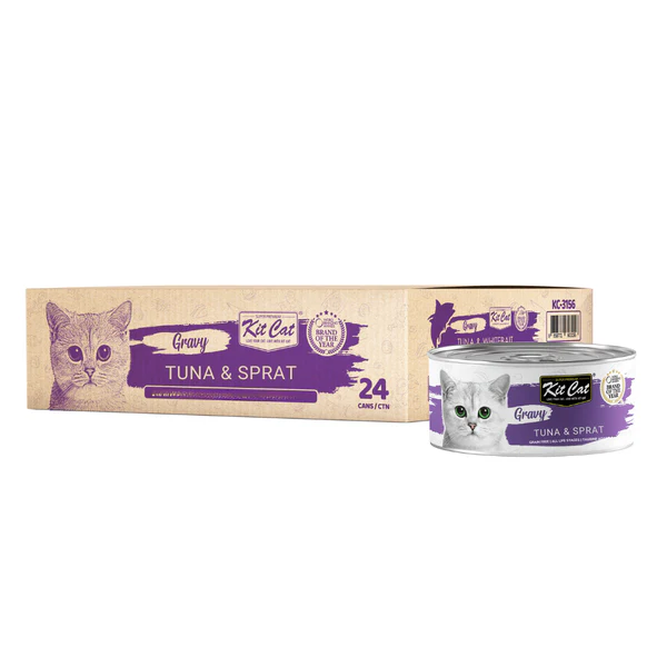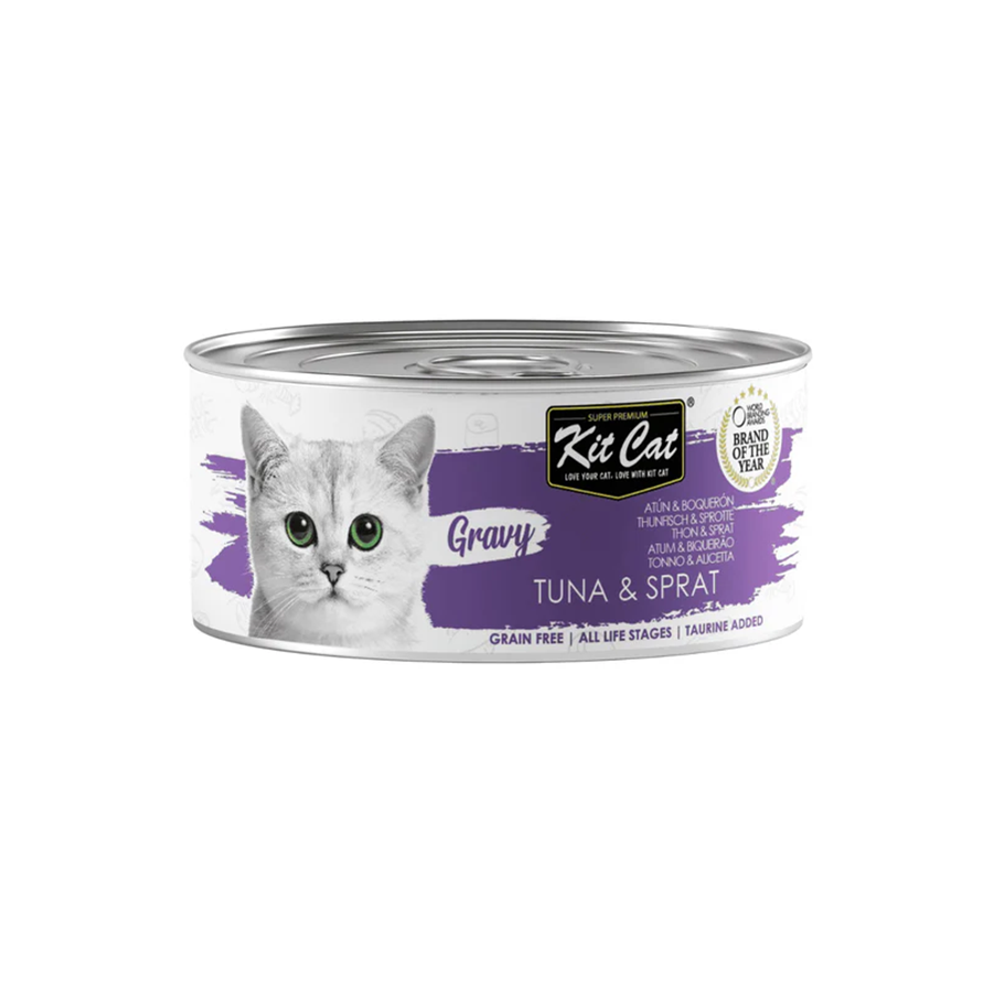 Las latas Kit Cat Gato Atún y Chanquetes en Salsa ofrecen una alimentación completa y natural, sin cereales ni subproductos. Con prebióticos, taurina, Omega 3 y 6 y alto contenido en agua, favorecen la digestión, fortalecen el sistema inmunitario y mantienen la piel, el pelaje y la salud general de tu gato.