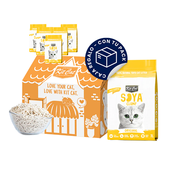 La arena Kit Cat Soya Clump es una opción 100% ecológica y biodegradable creada a partir de soja natural, con un aroma delicado. Se fabrica utilizando las partes no solubles de la soja, que normalmente se descartan durante la elaboración de la leche de soja. Gracias a la innovación de Kit Cat, este subproducto adquiere una nueva vida, convirtiéndose en un recurso sostenible para la higiene de tu gato.