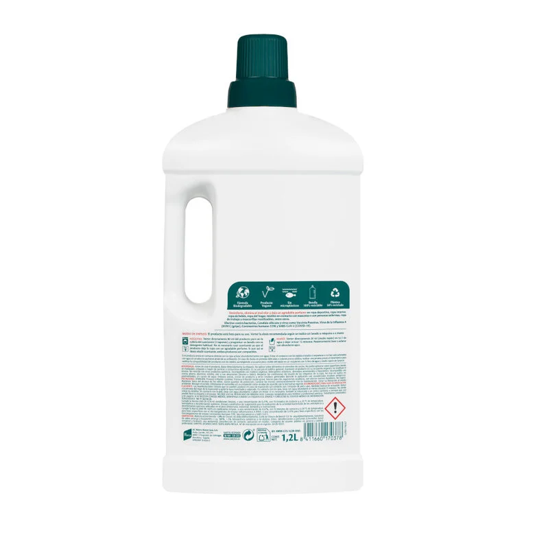 Sanytol desinfectante para la colada es un potente aditivo diseñado para eliminar el 99,9% de los gérmenes que se acumulan en la ropa, incluso lavando a baja temperatura (desde 20 °C) y con ciclos cortos. A diferencia de un detergente convencional, que no consigue eliminar las bacterias ni los malos olores en lavados fríos, Sanytol actúa desde el interior de los tejidos eliminando hongos, bacterias y virus envueltos como el de la gripe, causantes de malos olores, infecciones o irritaciones en la piel. Su fórmula sin lejía es segura para todo tipo de tejidos y colores, y deja un agradable perfume duradero. Además, también desinfecta la lavadora, previniendo la aparición de malos olores cuando no se tiende la colada de inmediato.