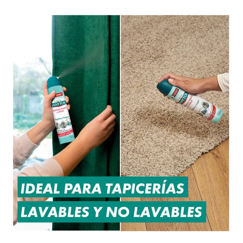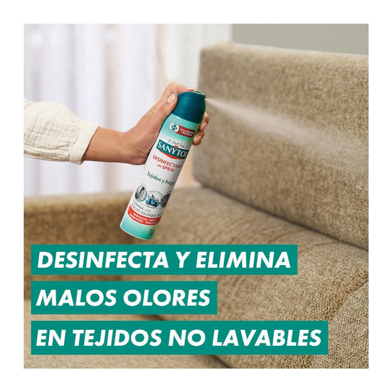 Aerosol desinfectante y desodorizante con eficacia probada que elimina el 99,9% de gérmenes en tejidos lavables y no lavables. Su fórmula de triple acción actúa contra bacterias, hongos y virus, proporcionando una desinfección profunda sin necesidad de usar lejía. Es ideal para refrescar y desinfectar prendas entre lavados, manteniéndolas libres de gérmenes sin dañarlas ni mancharlas. Además, neutraliza los malos olores dejando un suave y agradable aroma a flor de algodón.